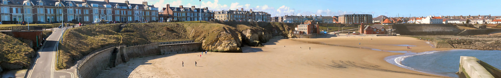 Cullercoats is part of the North Tyneside conurbation, sitting between Tynemouth and Whitley Bay. There is a semi-circular sandy beach with cliffs and caves, and the village is a popular destination for day-trippers. The name is thought to derive from Dove (or Culver) Cotes.