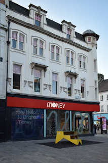 A view of the street from Northumberland Street. Shops in the photograph include Direct Raincoat, Doreen's Gowns, K. L. Television, Royal Air Force Careers Office and The Rumbling Tum.